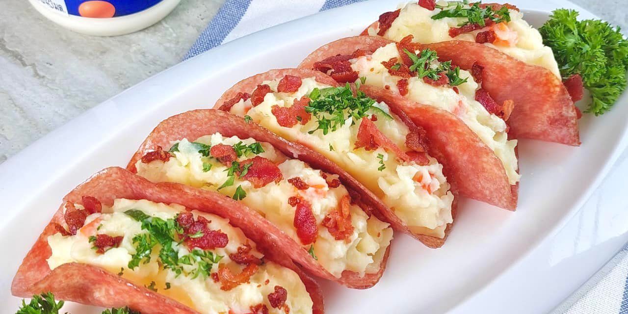 👩🏻🍳 อยากทำเมนูไวรัล #แฮมห่อสลัดมันฝรั่ง 🥔 แต่ที่บ้านไม่มีแฮม ก็เลยเอาซาลามิที่นอนแช่ในตู้เย็นมาทำแทน จับมาห่อเป็นสลัดมันฝรั่งซะเลย